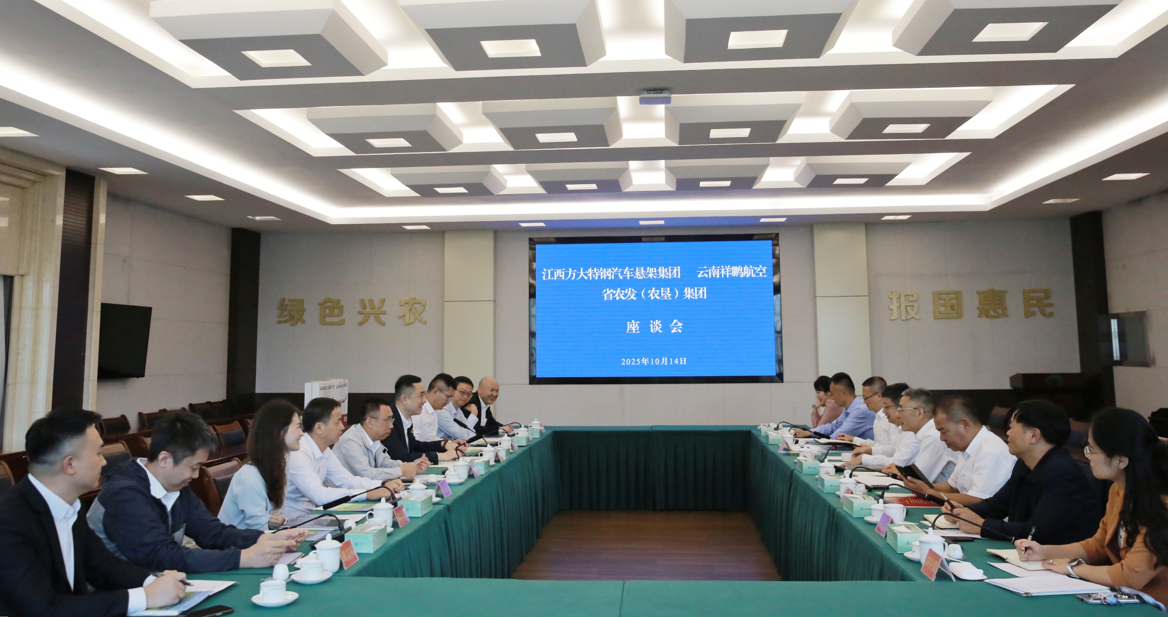 江西方大特钢汽车悬架集团相关负责人,云南祥鹏航空公司副总裁田海等相关负责人,集团总部相关部门、企业负责人参加座谈。